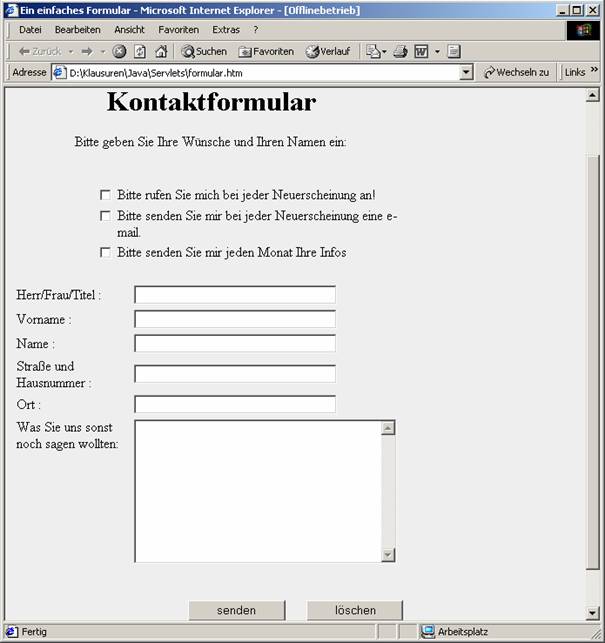 action="D:\Klausuren\java\Servlets\beispiel1"> //Ort des Servlets, das hier angesprochen